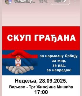 Danas, 1. oktobra 2025. godine, u Valjevu će biti održana