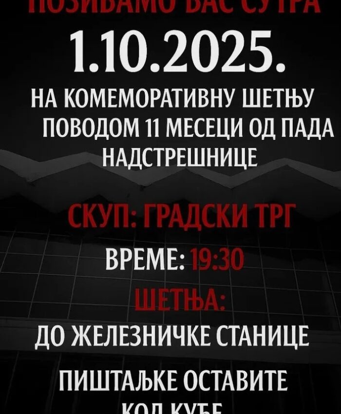 Danas, 1. oktobra 2025. godine, u Valjevu će biti održana komemorativna šetnja povodom jedanaest meseci