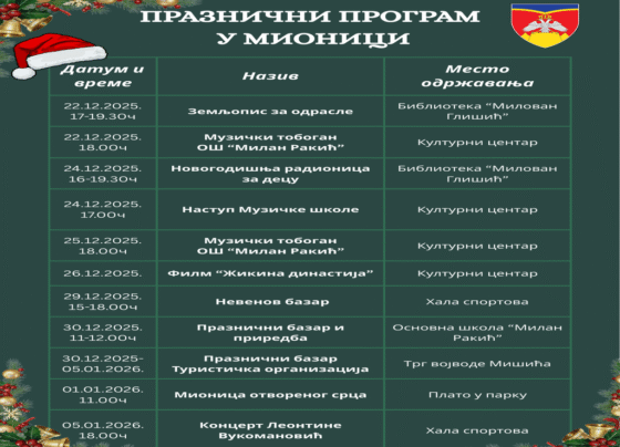 Najmlađe sugrađane i njihove roditelje krajem decembra očekuje prava praznična čarolija -razigran i sadržajan novogodišnji program pun predstava, muzike i…